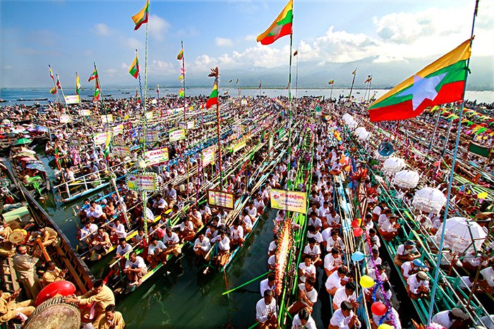 L’art du cœur de l’État Shan est situé à environ 30 km de Taunggyi et entouré de belles montagnes. C’est un magnifique lac montagneux, à 900 mètres d’altitude. Le lac est long de 22 km et large de 10 km et habité par de nombreux groupes ethniques différents de la région. Le marché flottant, la ferme flottante et les rameurs uniques (Inthar), le style de pêche traditionnel d’Inle sont très intéressants.